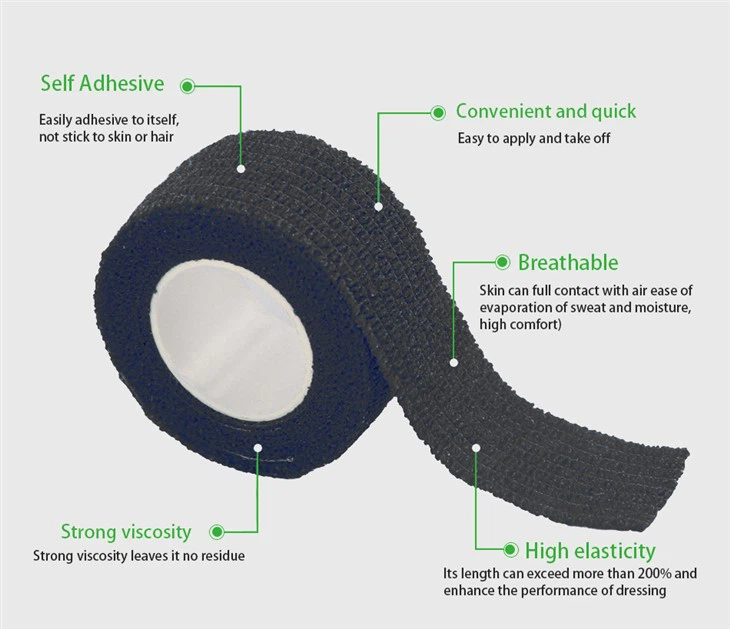 Perban perekat untuk tato adalah perban bungkus elastis yang terbuat dari kain non-anyaman 90% dan spandeks 10%, ini adalah perban perekat. Ini sering digunakan untuk membungkus pegangan mesin tato, yang membantu mencegah pegangan dari tergelincir selama penggunaan dan meningkatkan gesekan jari -jari Anda, yang dapat membantu Anda menggambar desain tato dengan lebih akurat.